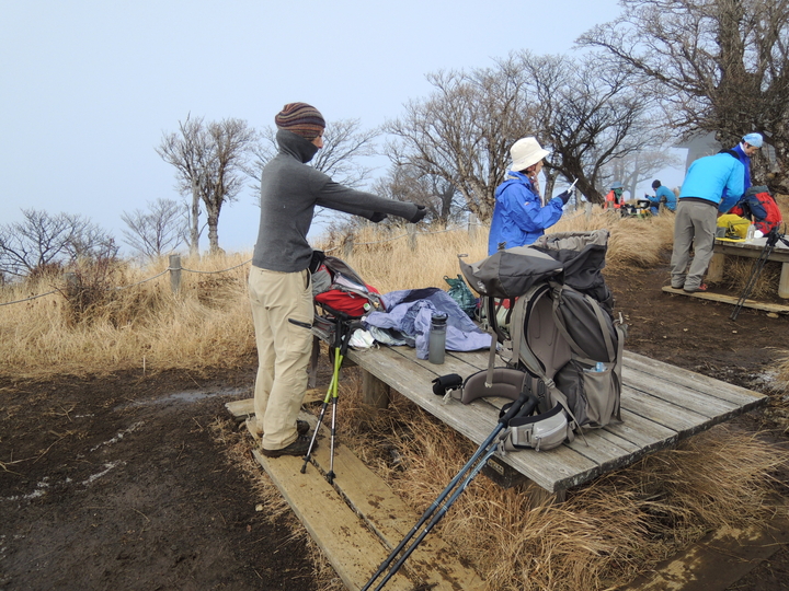 山頂は風が強くてひじょうに寒く、手の感覚がすぐなくなった。