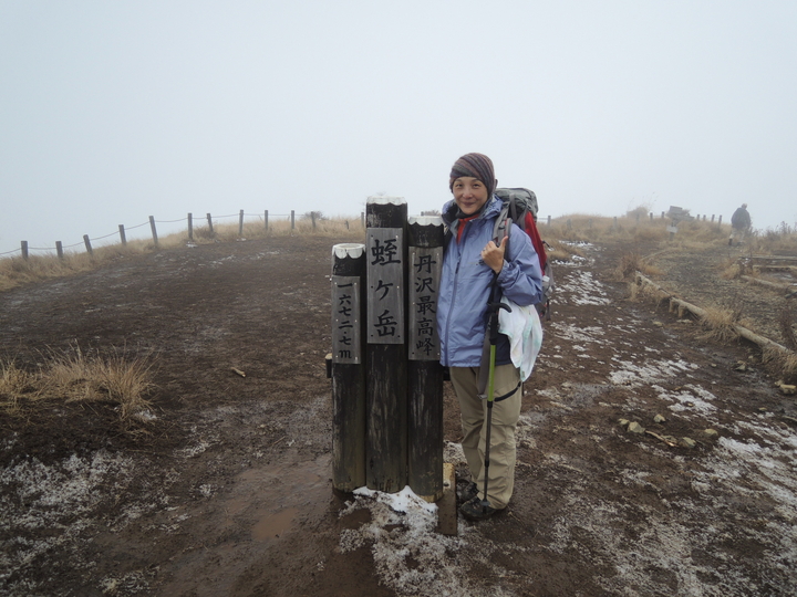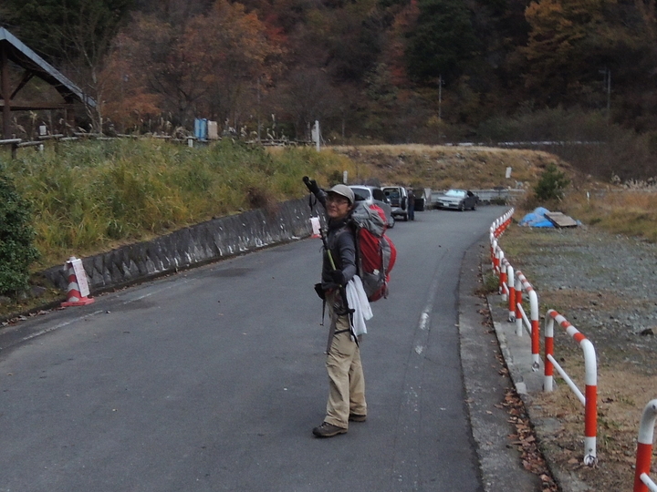16:40 到着の決めポーズ。朝先に出発したおじさんが、ちょうど帰り支度をしていた。ルートを話すと「健脚だ」と褒められたが、おじさんも同じコースを歩いたようだった。