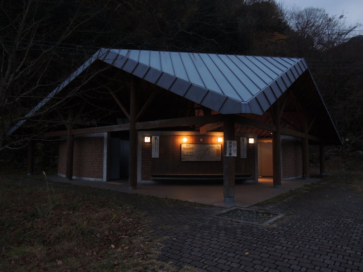 朝利用したセンサーライト付の公衆トイレ。ロングコースに疲れ果てたが、心地よい充実感に満たされていた。本当によく歩きました。