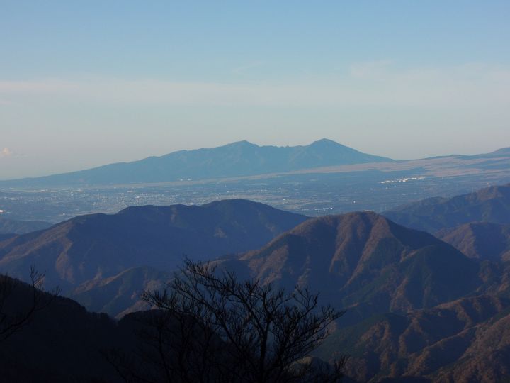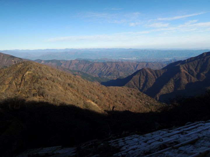 北側の眺め。左端に大室山。右手前にこれから向かう袖平山。奥には奥多摩・奥秩父の山並み。