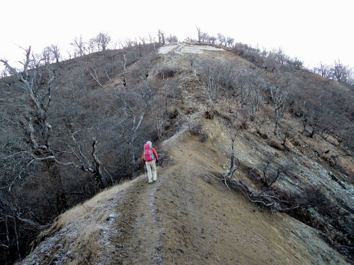 小ピークを越えると正面に袖平山が見えた。ここまで来ると、ちょっとした上りもきつくなってくる。