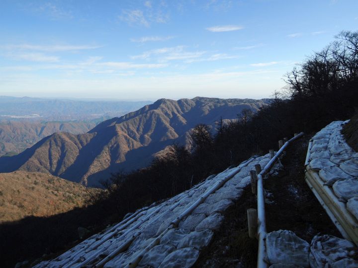 熊笹ノ峰の稜線に出るまで、1,000m近く上りが続く。凍結箇所はなく、下の方は霜柱も目に付かなかった。