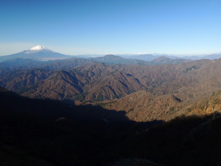 これから向かう東側には、蛭ヶ岳、丹沢山、塔ノ岳と丹沢主脈の峰々がずらりと並ぶ。