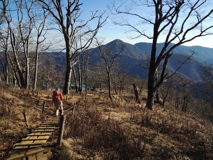 木段を上り終えて稜線を進むと、檜洞丸の山頂が近づいてきた。