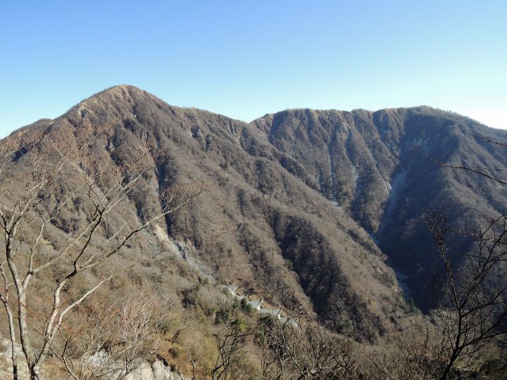 樹林の切れ間に見えた同角ノ頭。右奥には神山と金時山も見えていた。