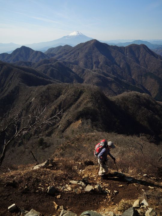 富士山手前に、熊笹ノ峰から檜洞丸、臼ヶ岳、ミカゲ沢ノ頭と、歩いてきた稜線が一望できた。