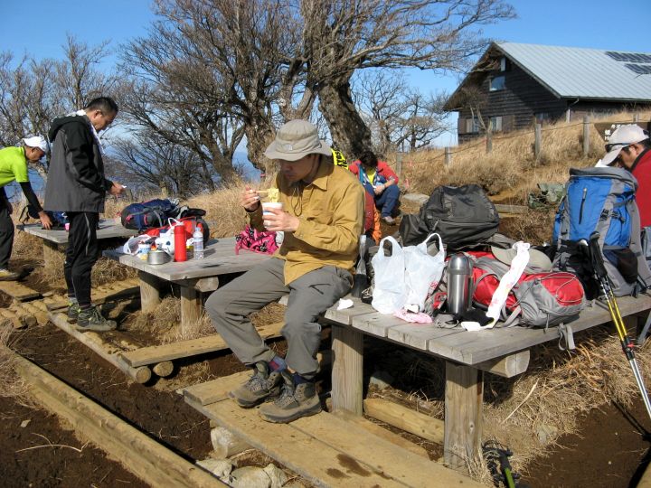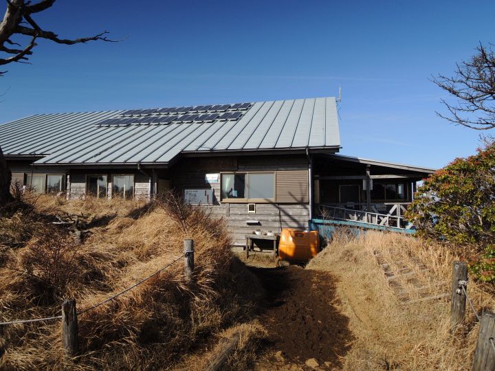山頂下の青ヶ岳山荘では、小屋番の人たちが朝の準備をしていた。