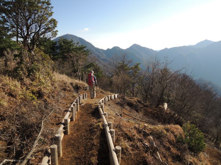 稜線からの眺めを楽しみながら、クサリ場や小さなアップダウンを進む。