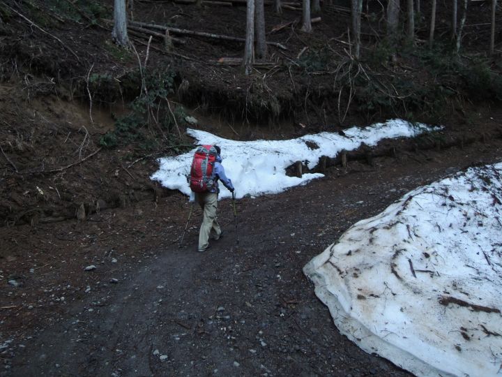 融けかかったくされ雪で、登山靴が中までびしょびしょに濡れてしまった。