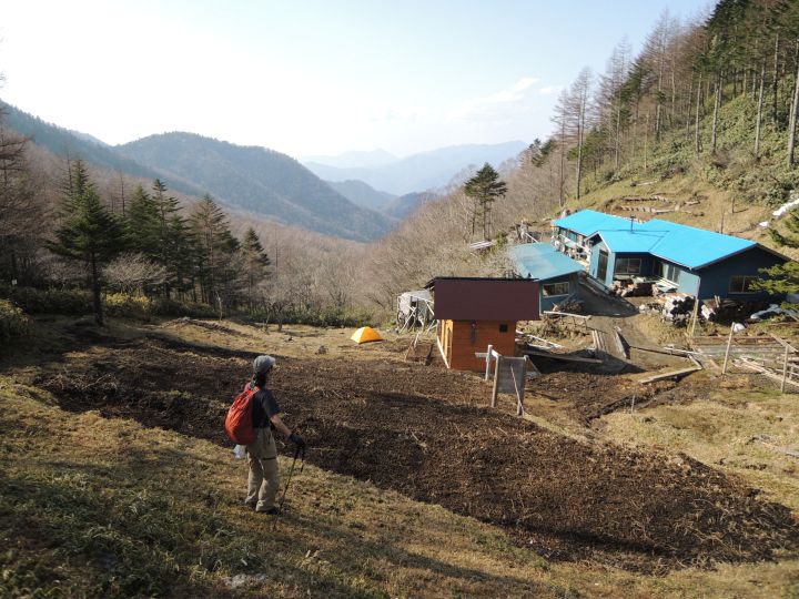 7:05 将監小屋に到着。小屋は閉まっていて、まだ誰もテントの設営をしていなかった。