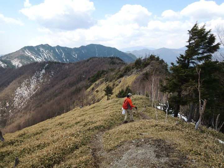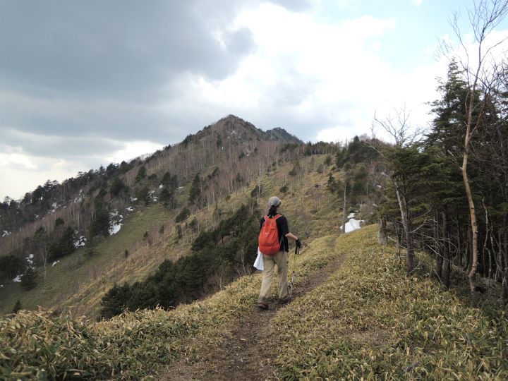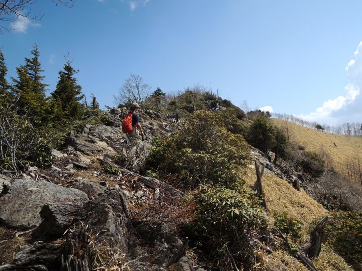 14:35 写真を撮って西御殿岩へ向かった。いったん下る一般ルートではなく、県境の尾根を進んだ。