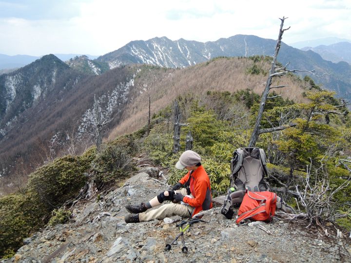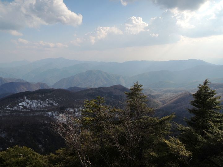 1時半起床、1時55分出発。圏央道をつかって三ノ瀬に4時35分到着。テント泊初日は和名倉山に登る予定だったが、積雪と泥濘に加えて、コースをふさぐ倒木と灌木にも体力を奪われてしまったので、今回は東仙波で引き返して唐松尾山と西御殿岩に登ることにした。唐松尾山から西御殿岩までは、一般ルートではなく県境の尾根沿いを歩いたが、途中から道が険しくなって踏み跡もなくなり、しばし途方に暮れた。南斜面の一般ルートと合流して事なきを得たが、ロスト状態の数分間がとても長く感じられた。西御殿岩からの眺めは素晴らしく、360度の大パノラマが広がっていた。他の登山者はいなかったので、しばし至福の時間を過ごした。