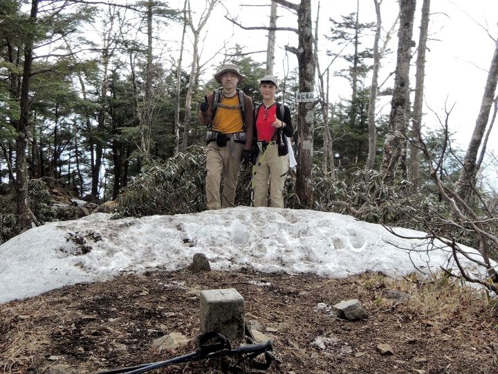 14:25 唐松尾山に到着。三角点と簡易標識のみの、地味な山頂だった。