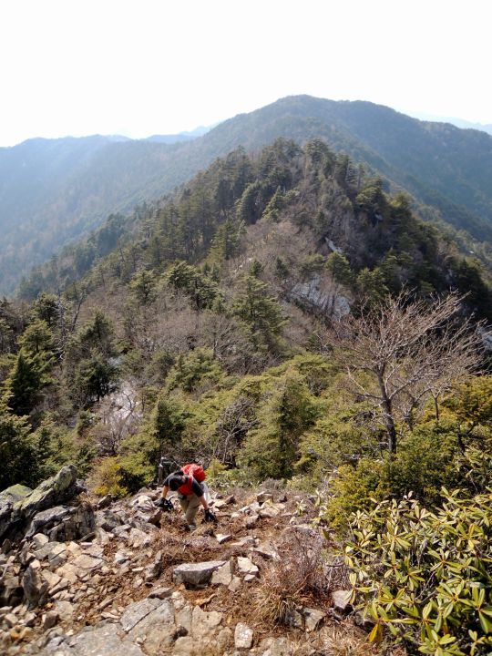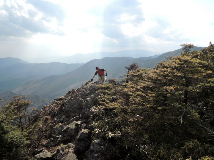 再びシャクナゲ灌木地獄を突き進んで、やっと眺めのよい露岩帯に出た。