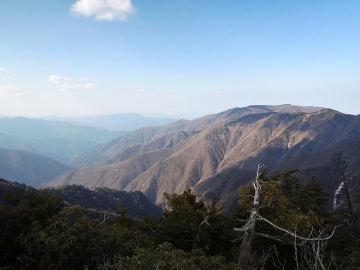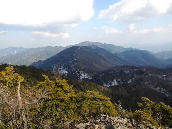 南東方面。真ん中奥は飛龍山。その手前に重なるのは竜喰山。