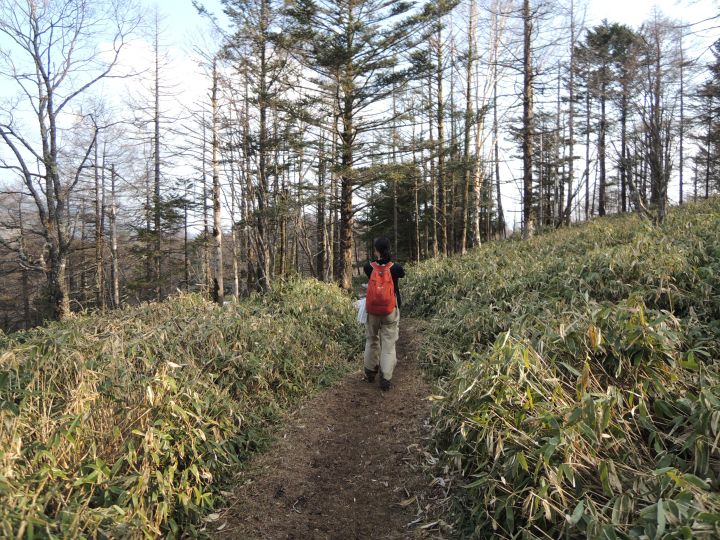 上を踏んでも、下をくぐっても大変な場所。しなった枝に何度も顔を打たれた。