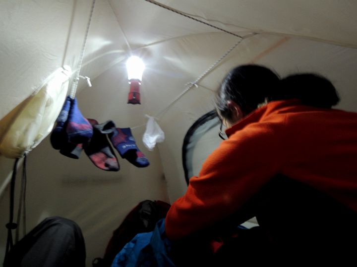 テントの中でカップ麺とアルファ米を食べていると、周囲から「おやすみ」という声が複数回聞こえてきた。