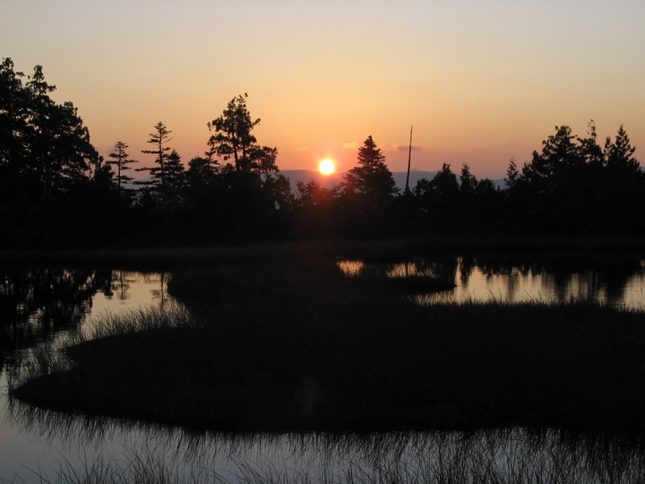 予想外の御来光に感激。湿原に出るのが10分遅かったら拝めていない。やはり早起きは三文の徳。