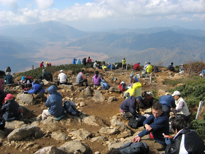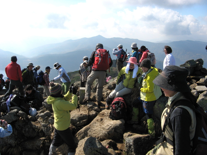 信じがたい数の登山者で賑わっていたが、山頂は広いので休憩場所には事欠かない。