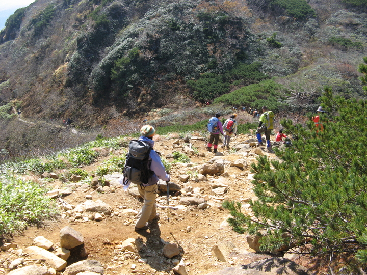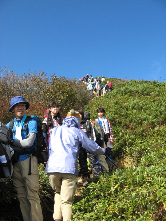 団体がどんどん上ってきて、登山者がますます増えた。この混み様には本当に驚いた。
