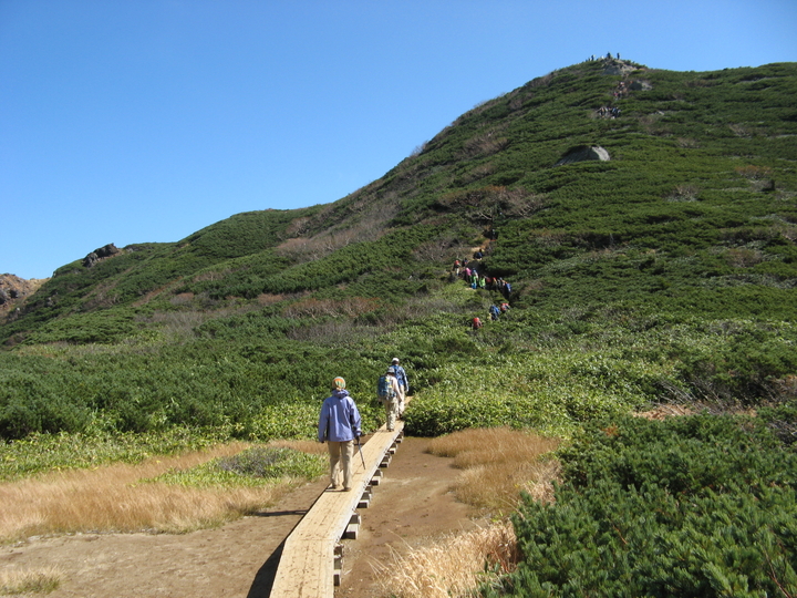山頂に近づくにつれ、すれ違う登山者が増えてきた。