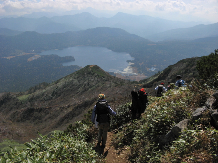 南側の眼下には尾瀬沼。その手前はミノブチ岳。