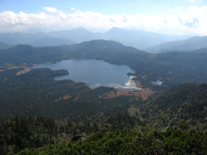 振り返ると熊沢田代と広沢田代が小さく見えた。