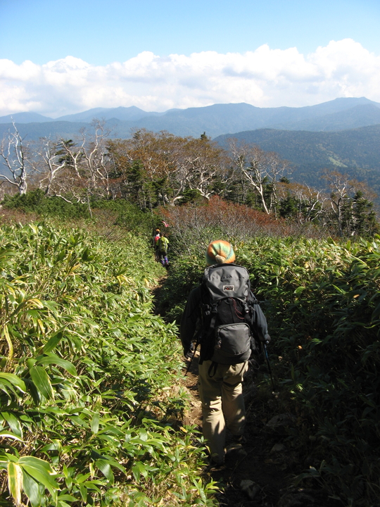 会津駒ヶ岳で見かけたおじさんに追い抜かれた。お互い顔を覚えていて、鳩待峠まで行くと言っていた。