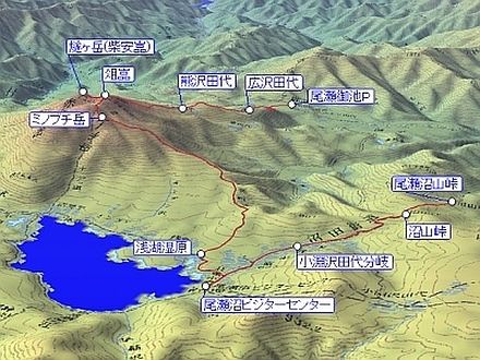 御池駐車場 4:30 ⇒ 5:50 広沢田代 6:00 ⇒ 熊沢田代 7:10 ⇒ 8:40 俎嵓(まないたぐら) 9:45 ⇒ 10:05 柴安嵓(しばやすぐら) 10:40 ⇒ 11:00 俎嵓 11:30 ⇒ 11:50 ミノブチ岳 12:00 ⇒ 13:35 浅湖湿原 13:45 ⇒ 14:00 尾瀬沼ビジターセンター 14:20 ⇒ 小渕沢田代分岐 14:40 ⇒ 沼山峠 15:10 ⇒ 尾瀬沼山峠 15:25