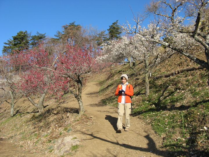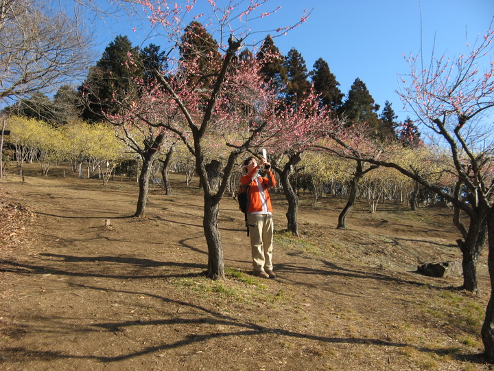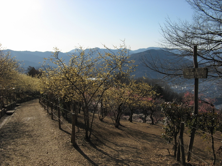 ロウバイ園の下方には梅の花が咲き始めていた。