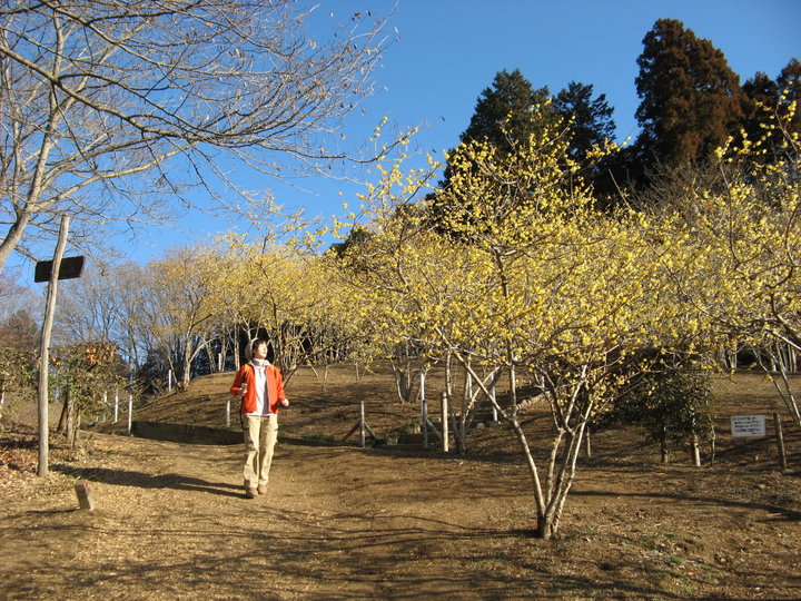 山頂からロウバイ園へ移動すると、ふいにロウバイの香りに包まれた。