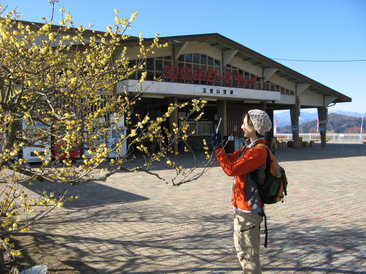 山頂駅周辺でも満開のロウバイが楽しめた。