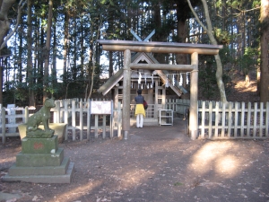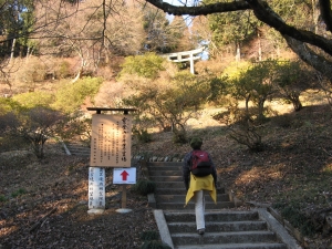 あっけなく奥宮の鳥居に到着。鮮やかな藍色のルリビタキを見つけたが、写真を撮る前に逃げられた。