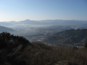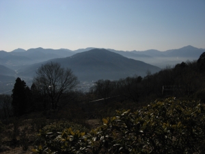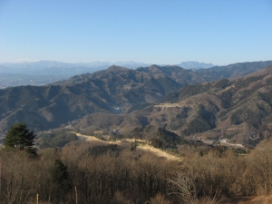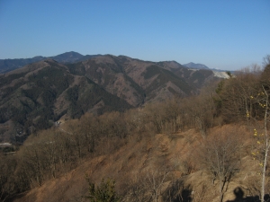 茶屋の前から南東側が見えた。中央手前の美の山の向こうに、左から笠山、大霧山、丸山、二子山、武川岳、そして武甲山。