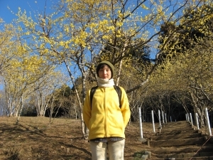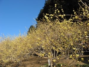 ロウバイ園の近くまで来ると、最初に甘い香りが漂ってくる。