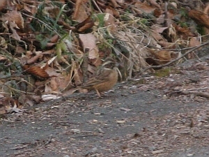しばらく歩くと山道にホオジロが現れた。