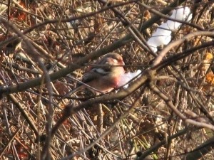 ひょっこり現れたベニマシコ。雪を食べているように見えた。