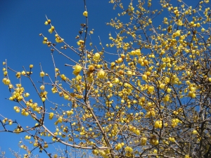 青空に映えるロウバイ。