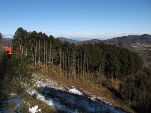 山頂付近は木が伐採されて、見晴らしがよくなっていた。風が強くて寒かった。