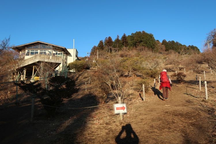ロウバイ園は南側が開けており、武甲山や三ツドッケ(天目山)など秩父の山並みが一望できる。左はロープウェイ山頂駅と蓑山。