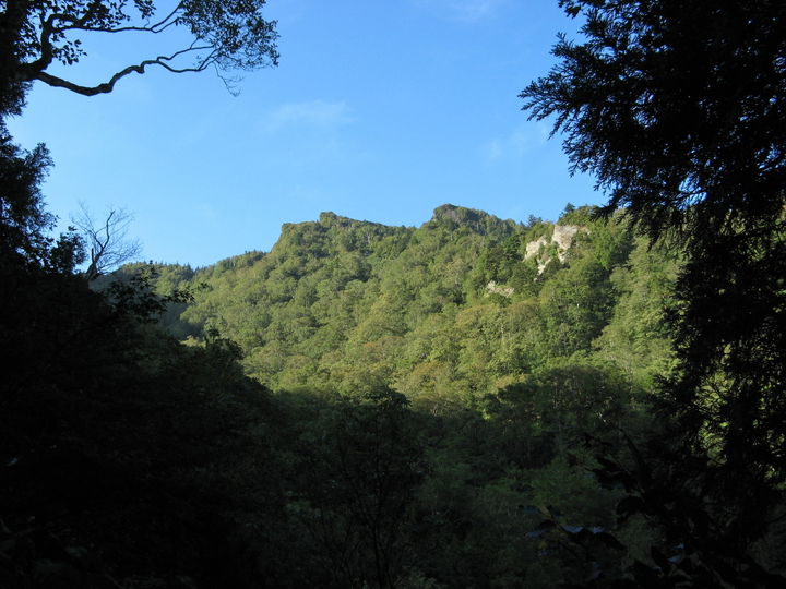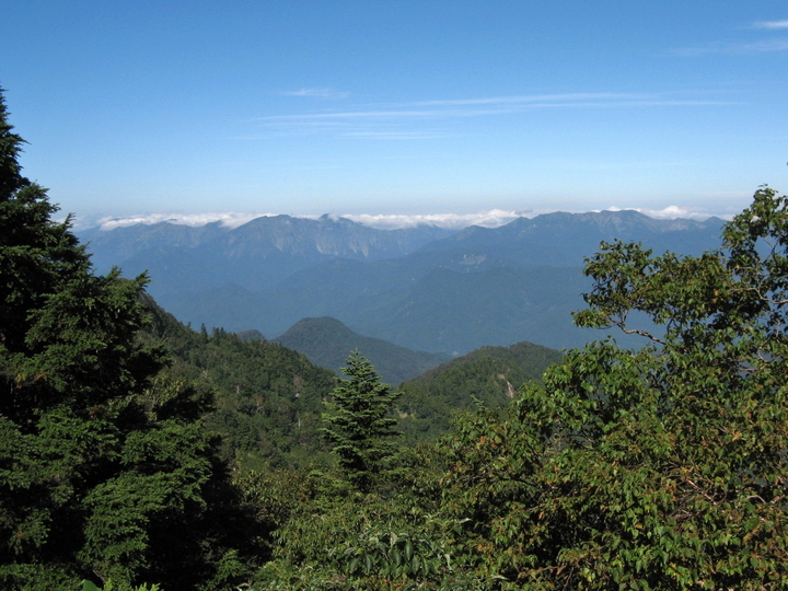 途中、樹林の切れ間から剣ヶ峰山が見えた。