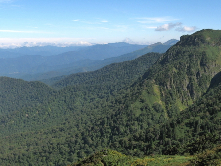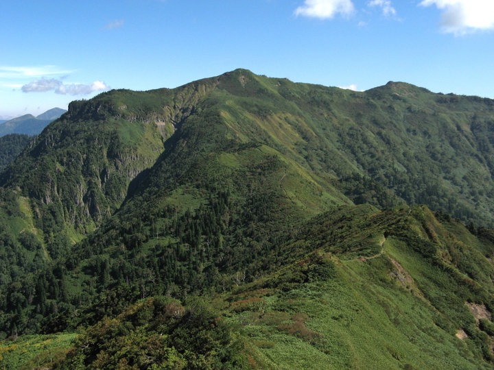 東側の稜線はさらに剣ヶ峰へと続き、その先は川場尾根が麓まで延びている。