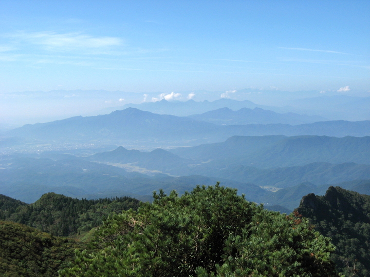 南西方面。子持山と榛名山。右奥にはうっすら八ヶ岳が見える。
