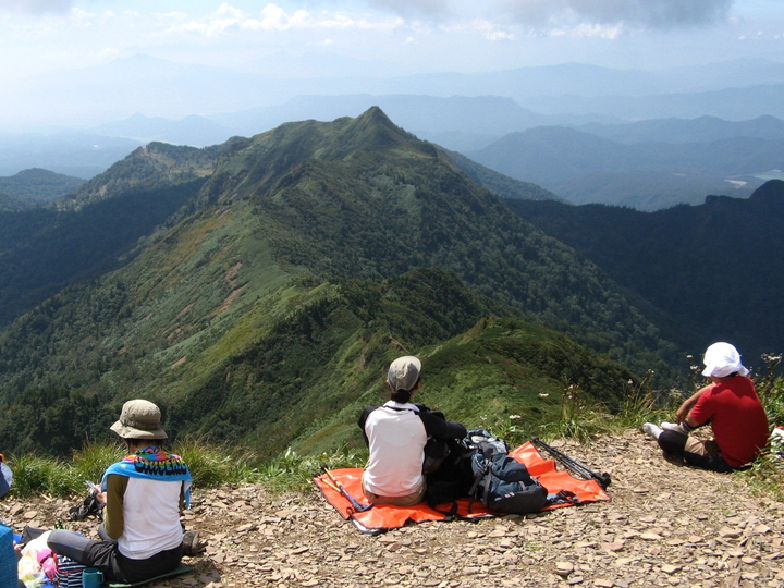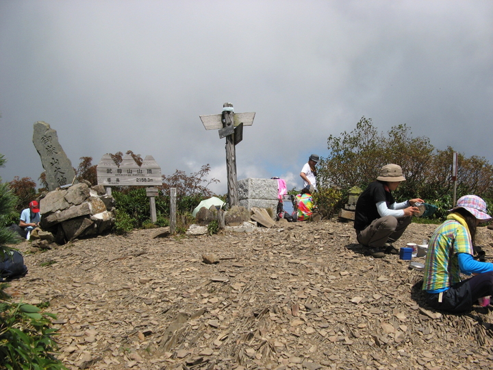 9:15 出発から4時間で剣ヶ峰山(2,020m)に到着。入れ替わりで誰もいない山頂を独占した。