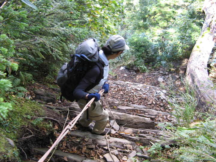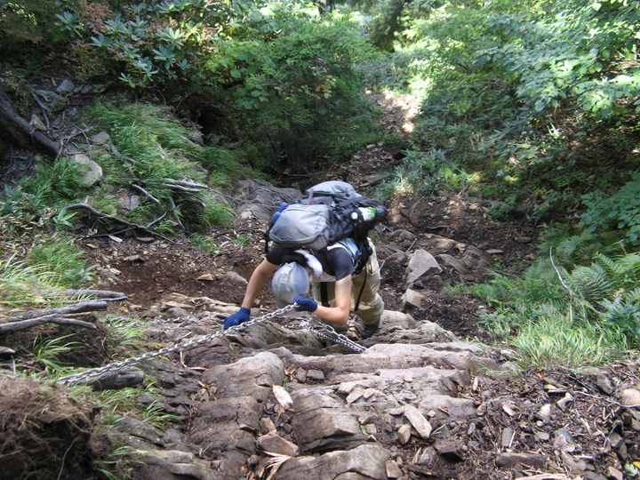 鎖を使わなくても降りられるが、上りよりも危険なので慎重に歩を進める。
