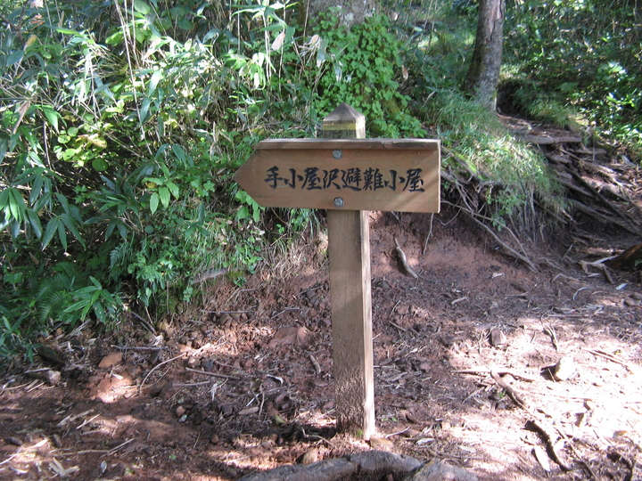14:20 ついに手小屋沢避難小屋の標識に到着。コースタイムを45分もオーバーしていた。