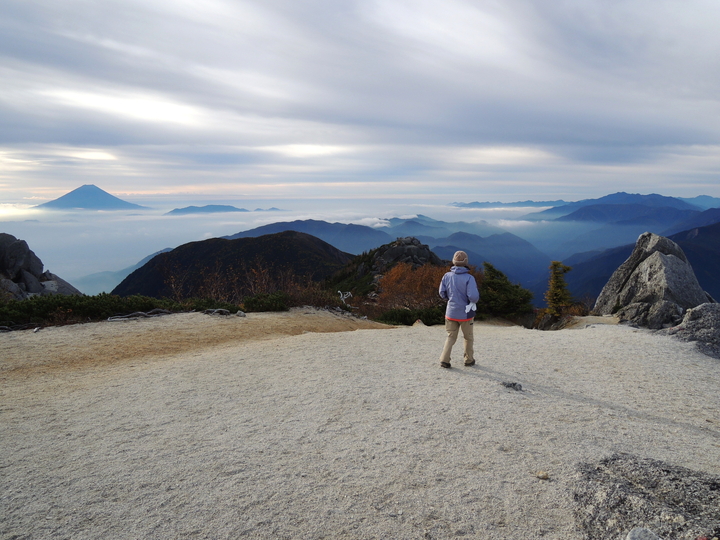 北側の眺め。左に地蔵岳のオベリスク。真ん中には八ヶ岳。