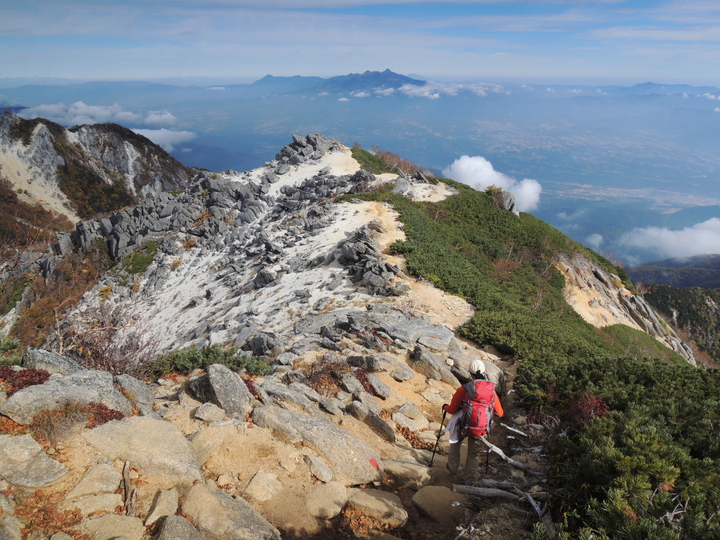 下りの稜線歩きも、素晴らしい眺めの連続。先へ進むのが惜しいくらい、どの方角も眺めがよかった。