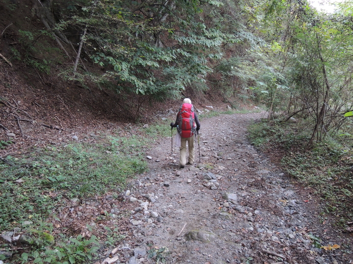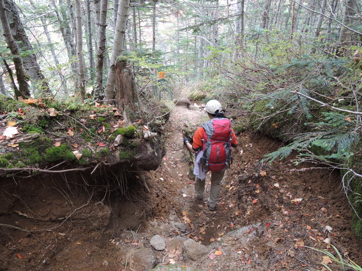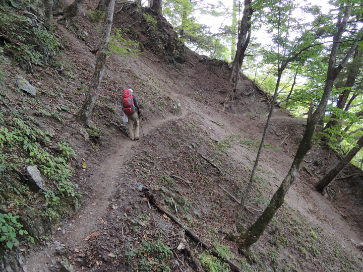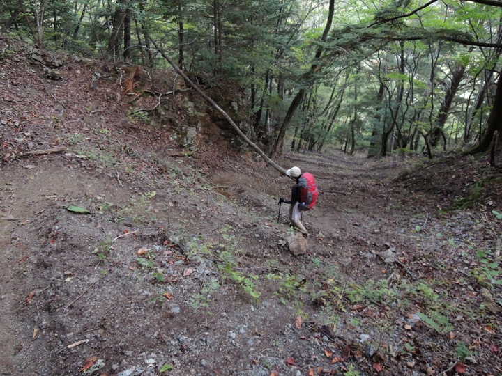 南精進ヶ滝を過ぎると傾斜はゆるくなり、小さなアップダウンを繰り返しながら高度を下げて行く。