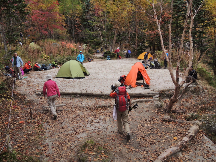 ほとんどのテントは撤収済みだった。我々も一息入れてから作業に取りかかったが、撤収に1時間近くかかってしまった。荷物は食料分だけ減ったはずなのに、やっぱりザックはパンパンだった。